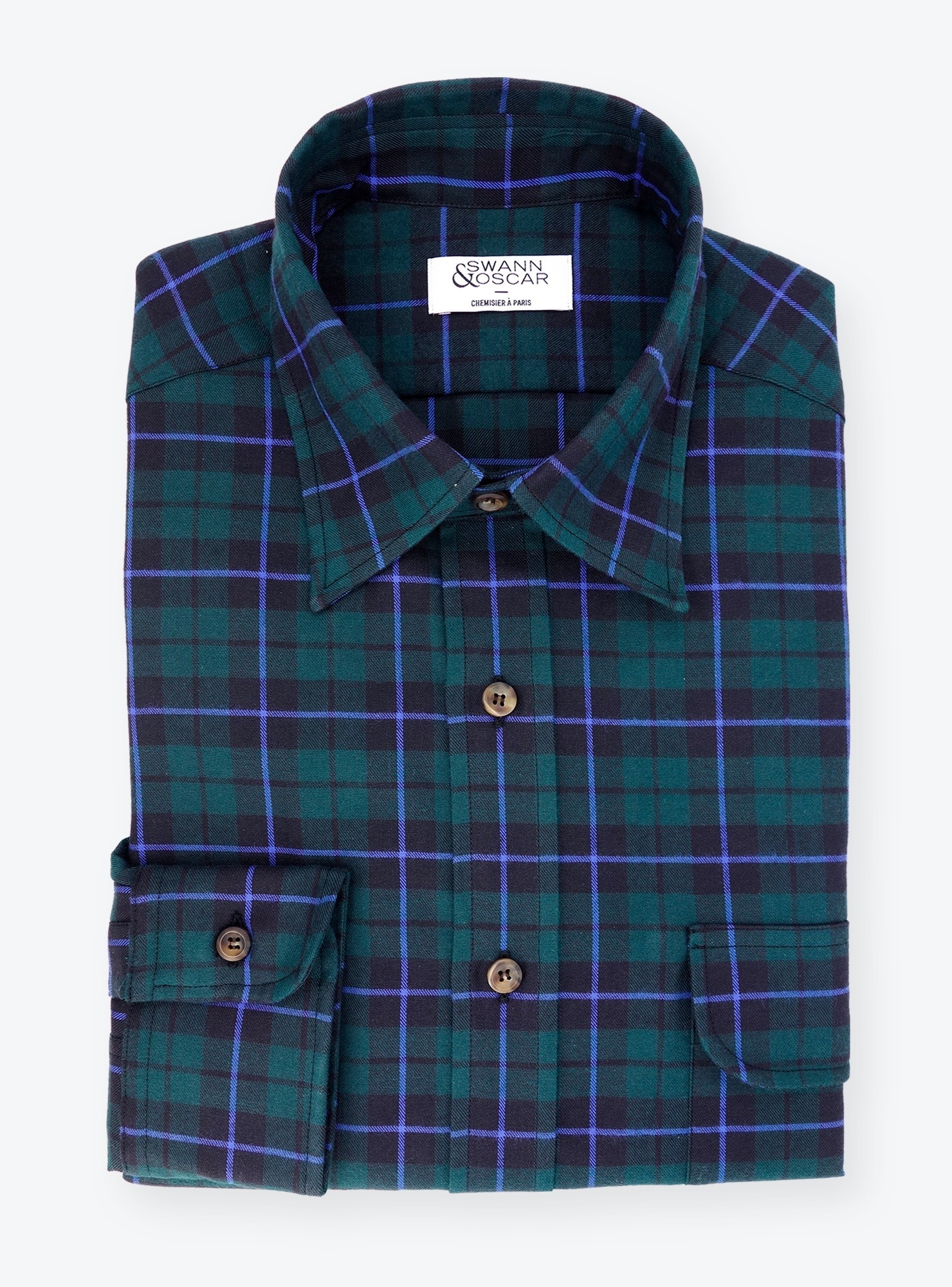 Blue and green cotton flannel by Thomas Mason. The stylishly restrained tartan print is ideal for a hunt in the Highlands or brunch with friends in the heart of Paris! The fabric is soft against the skin and is very comfortable for winter.