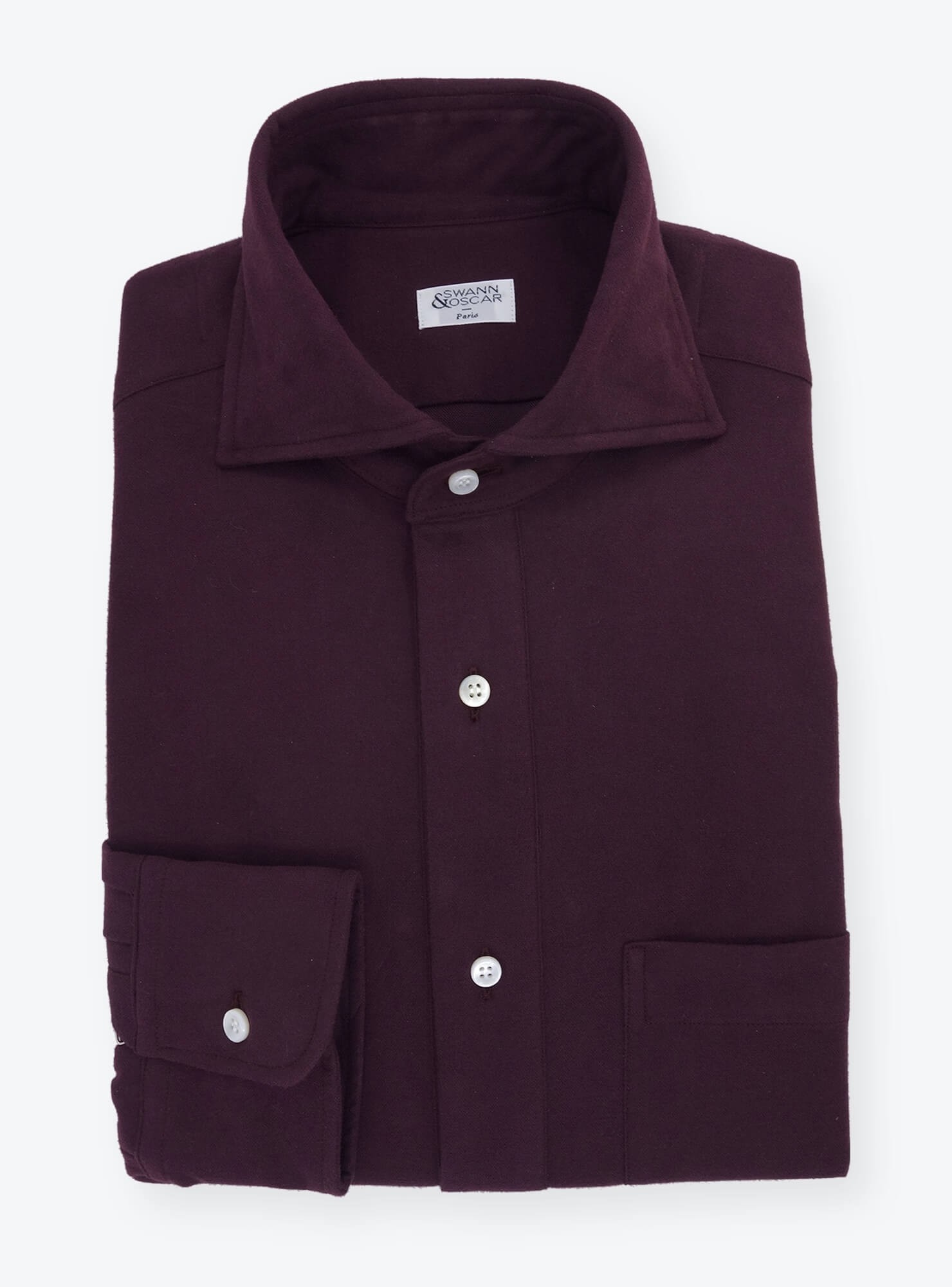 Plum-coloured cotton flannel from Thomas Mason. A thick and soft fabric that's both sporty and elegant. An excellent choice for this winter. Opt for an ultra flexible collar for an even sportier look.