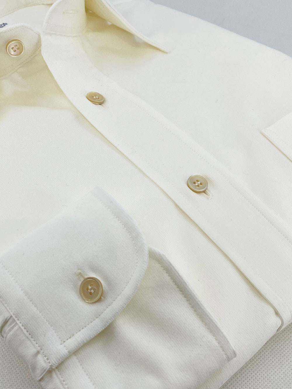 Off-white corduroy from Albini. corduroy is an excellent alternative to flannel for winter. Warm, comfortable, the cream color gives it a sporty chic look.