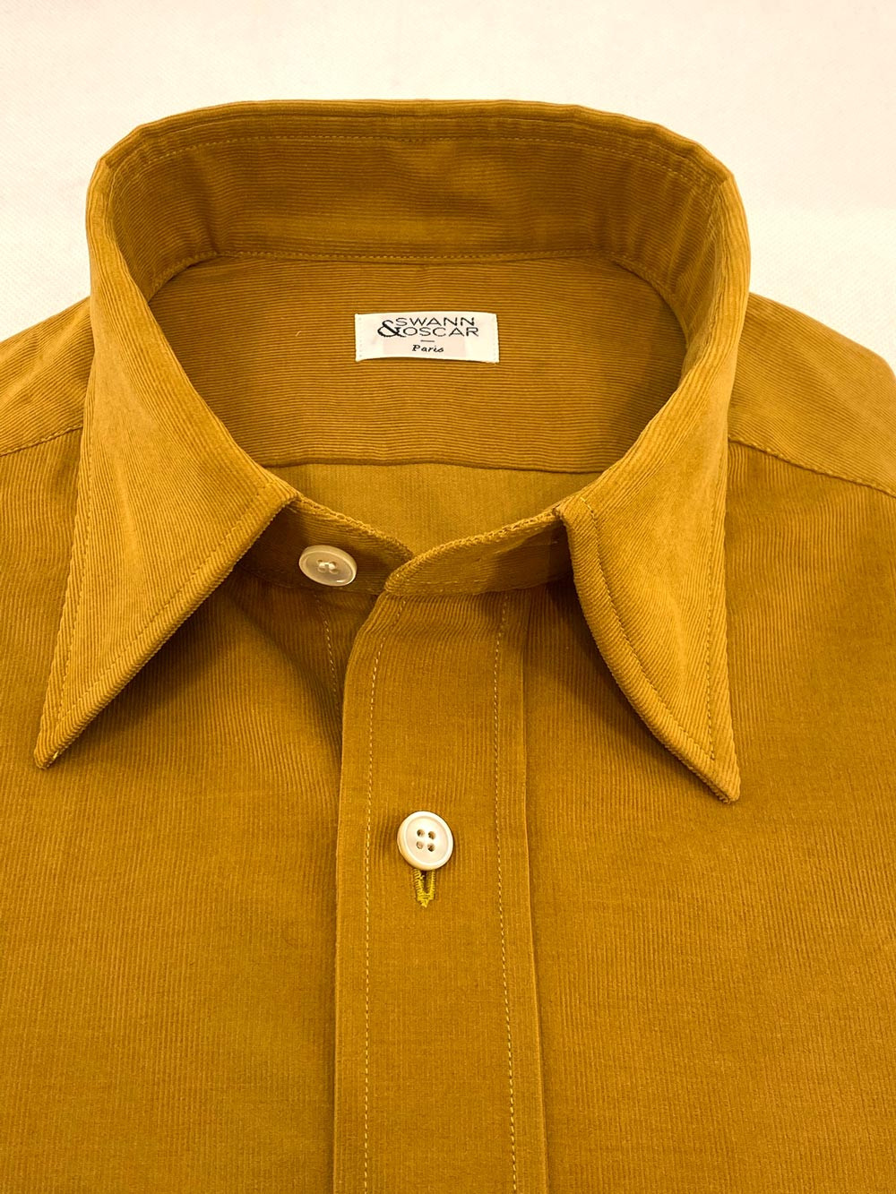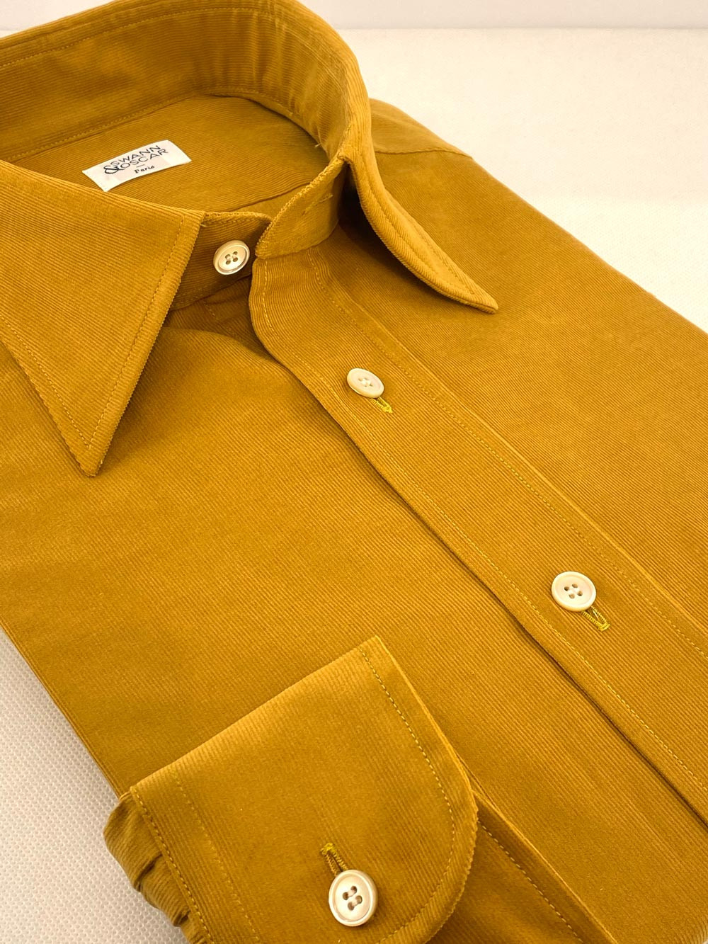 Camel corduroy from Albini. Fabric with thin sides, often called "baby cord", warm and comfortable, it is a great sport shirt. The collars that we advise you: Buttoned Amalfi, Soft Swallow or Positano.