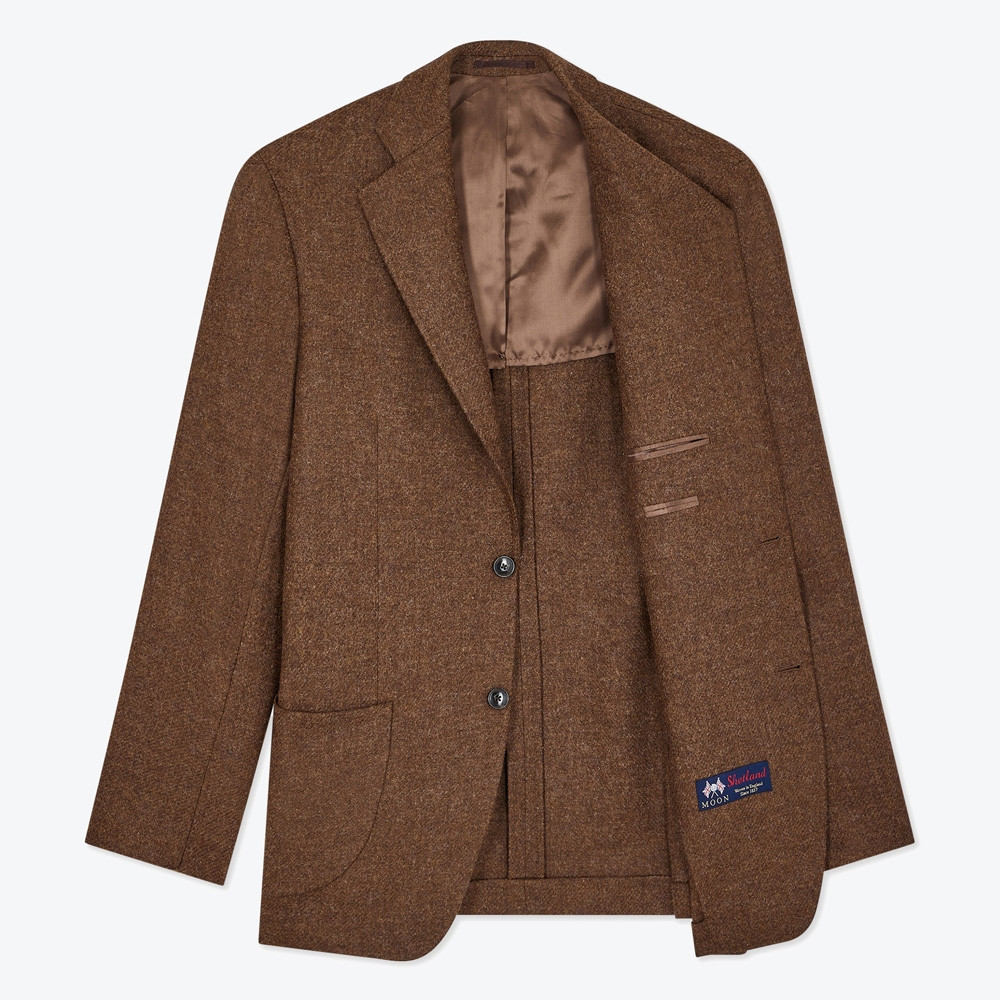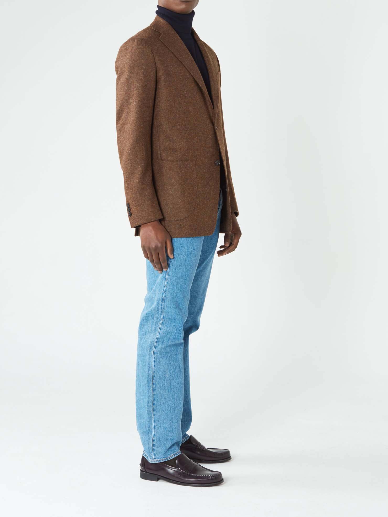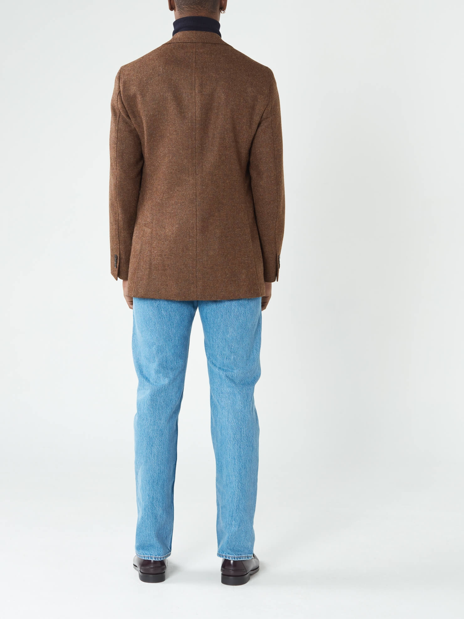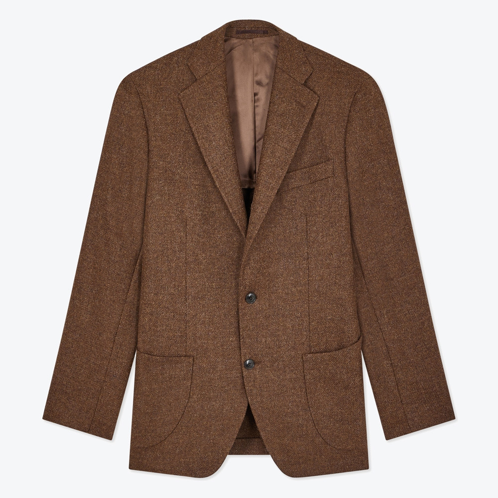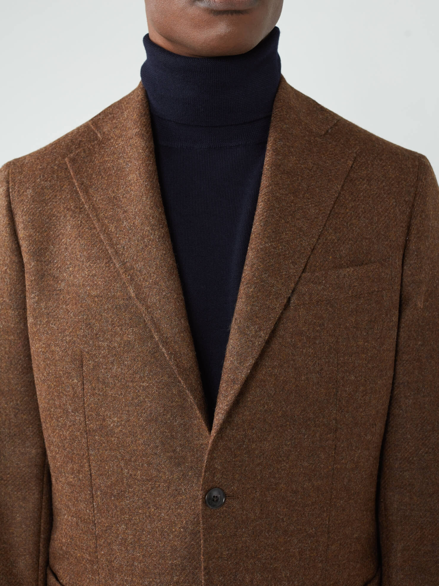 Brown wool and cashmere Sport Jacket - Unconstructed straight jacket, fully unlined, standard notch lapel, no epaulets or padding, barchetta chest pockets, two round patch pockets, two back slits, AMF 6mm stitching.