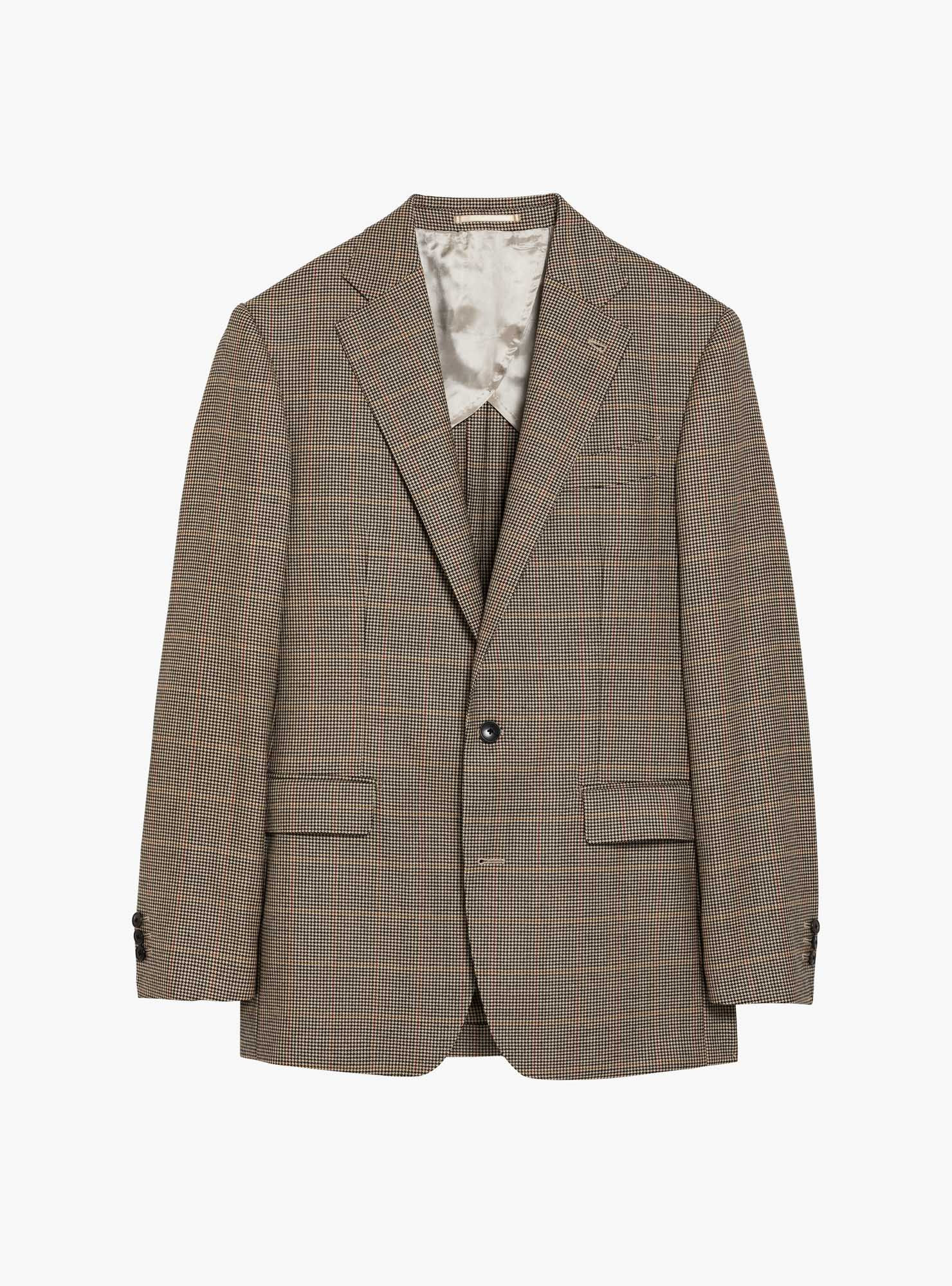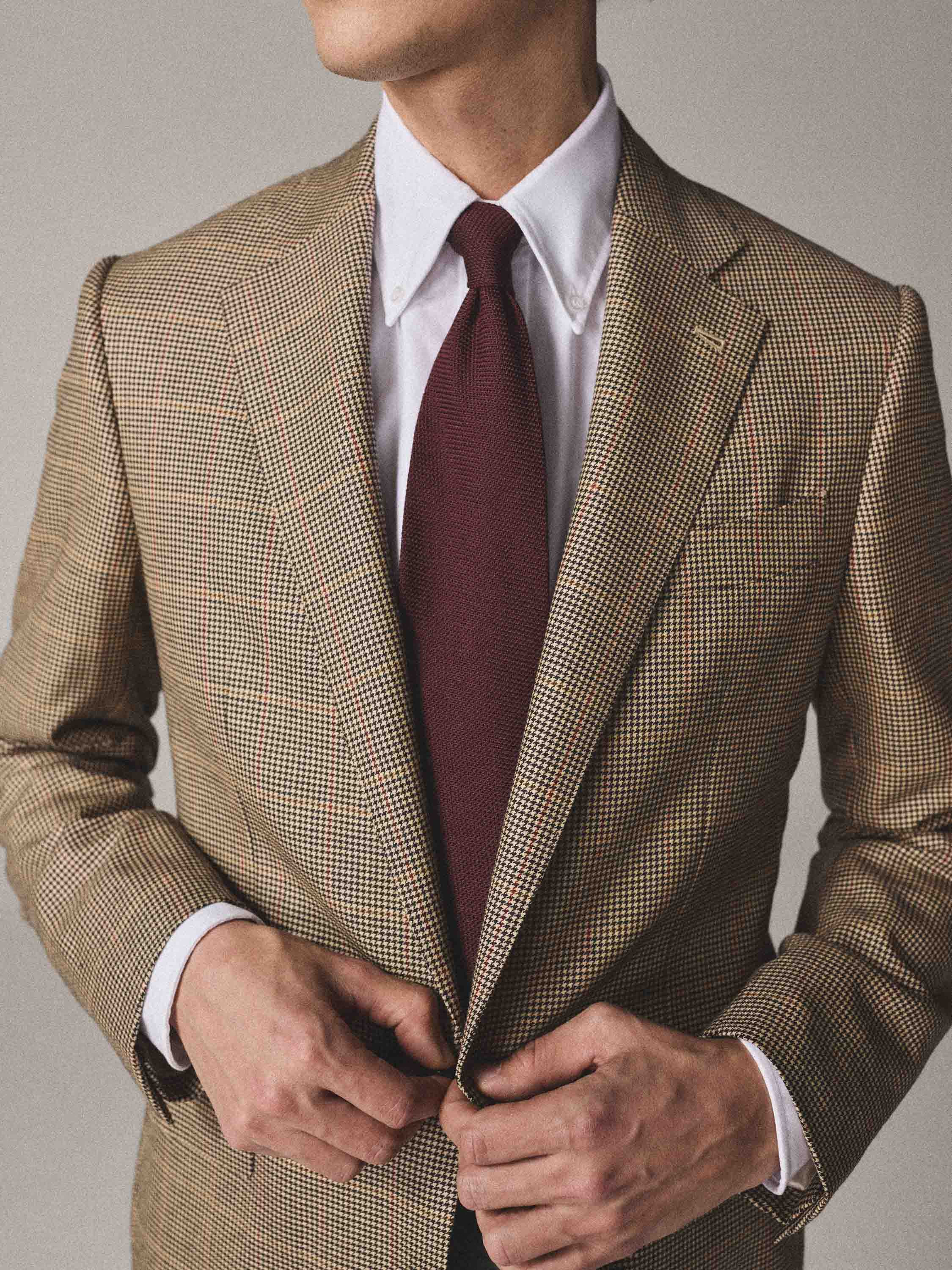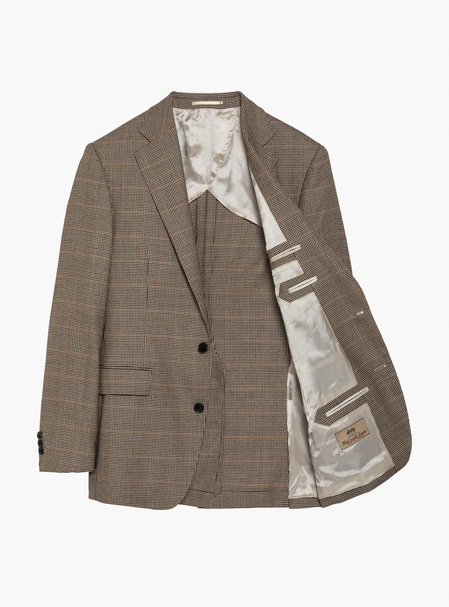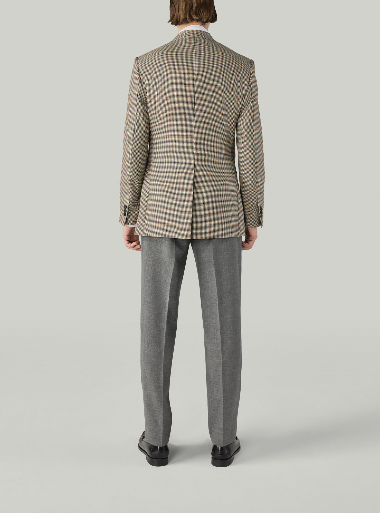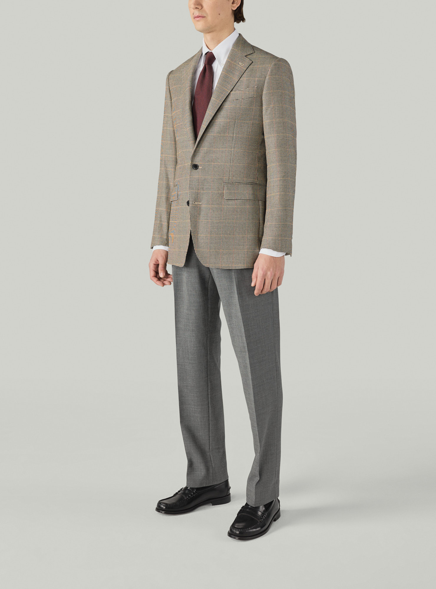 Two-Button Straight Jacket - Traditional construction with structured shoulders. Straight flap hip pockets, single rear vent, left unlined for comfort and ease.