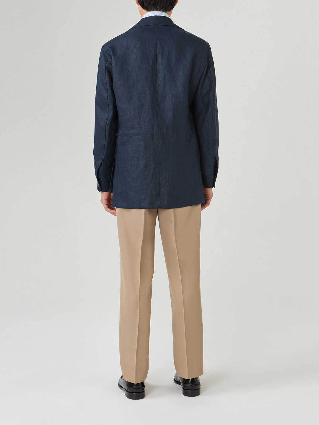 This season, our safari jacket takes on the look of a slack jacket: a soft, sporty piece cut from supple Irish linen.